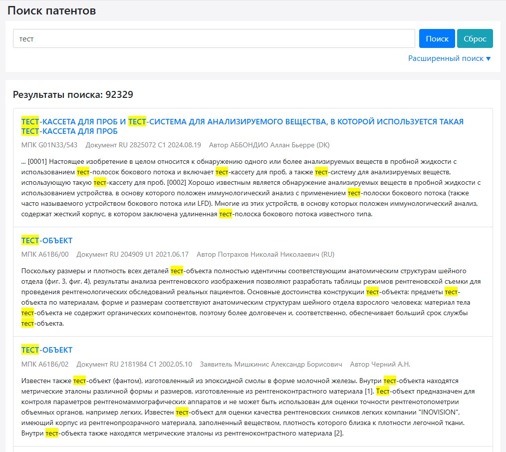 -библиотека, которая отвечает за поиск патентов, используя API сервиса